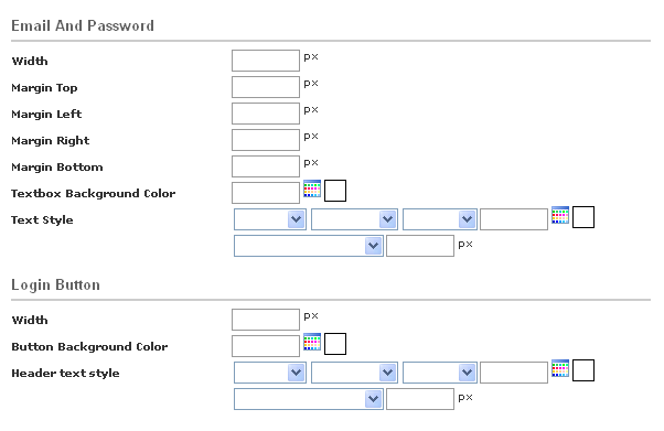 Here you can design the Login Panel, set the width of the Email and Pasword testboxes and design the Login botton.